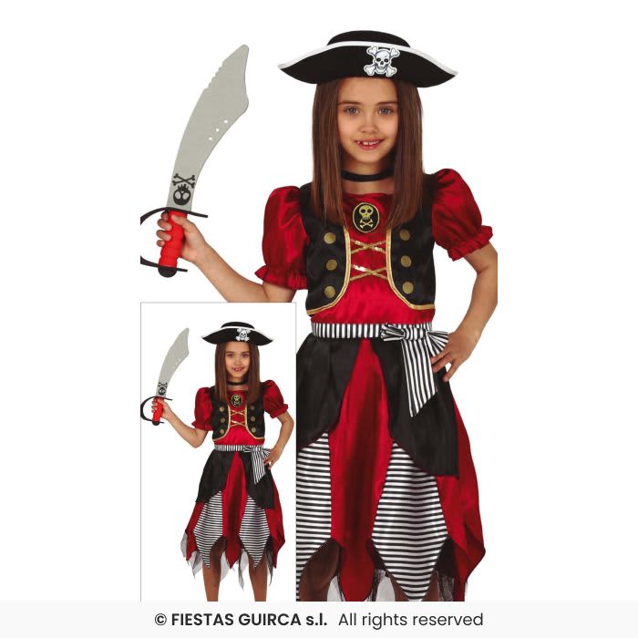 Prête à hisser les voiles et à embarquer pour l’aventure ? Avec ce déguisement de pirate fille, votre petite corsaire deviendra la reine des mers en un clin d’œil ! Confortable, coloré et plein de caractère, ce costume réunit tous les indispensables du parfait flibustier : une jupe esprit mer agitée, un haut rayé façon pont de navire, et bien sûr les détails dorés qui rappellent les trésors enfouis. Idéal pour le carnaval, une fête d’anniversaire ou une journée remplie d’imagination, il permet à chaque enfant d’exprimer son âme de pirate avec style et bonne humeur.